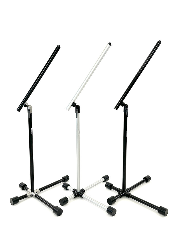 “Base 4 completely rethinks the mic stand… these stands are so much lighter and easier to use than the heavy steel stands we all know and love, but are strong enough to hold heavy ribbon and tube mics. It’s much easier to move these stands around the studio, and your back and shoulders will thank you.”