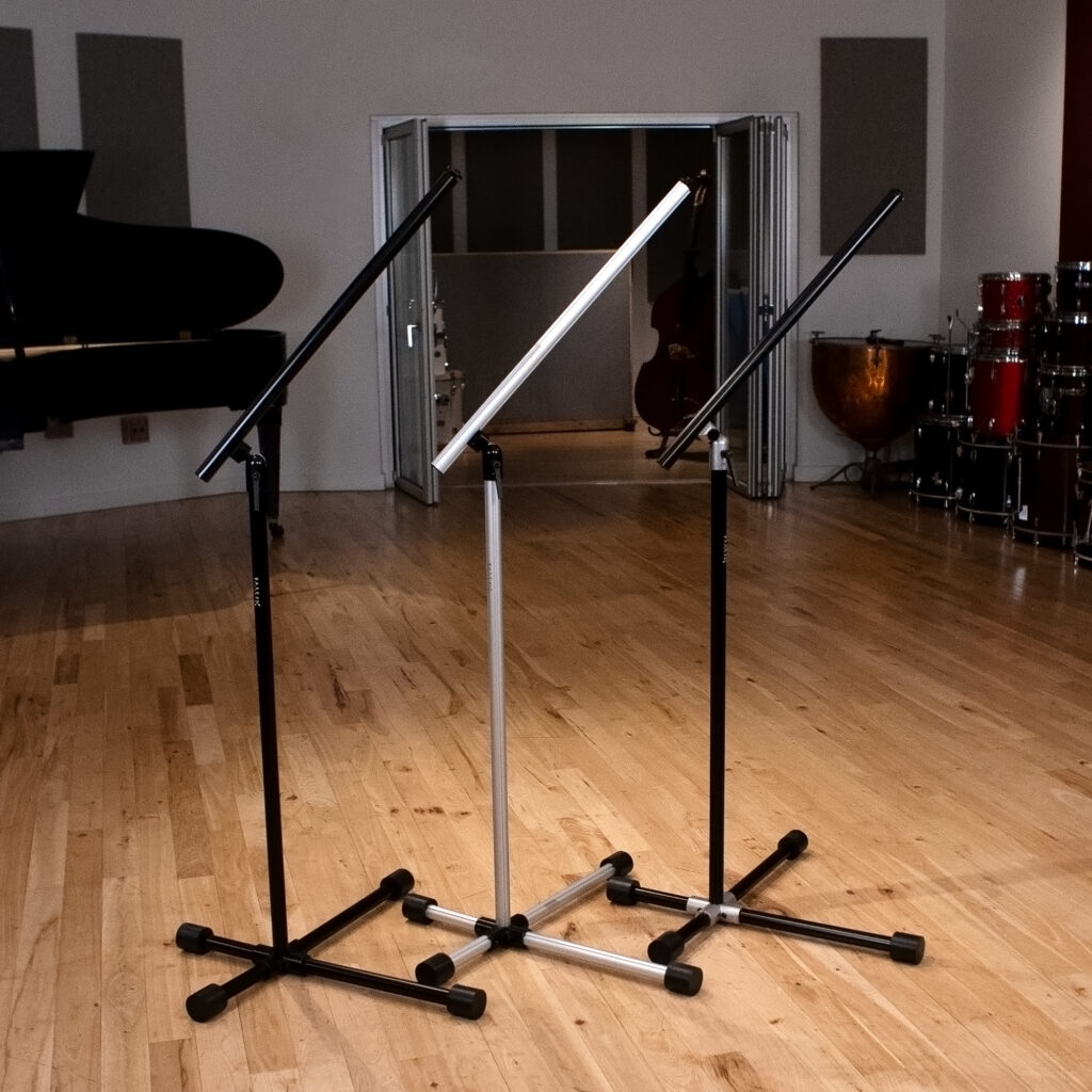 “Base 4 completely rethinks the mic stand…these stands are so much lighter and easier to use than the heavy steel stands we all know and love, but are strong enough to hold heavy ribbon and tube mics. It’s much easier to move these stands around the studio, and your back and shoulders will thank you.”